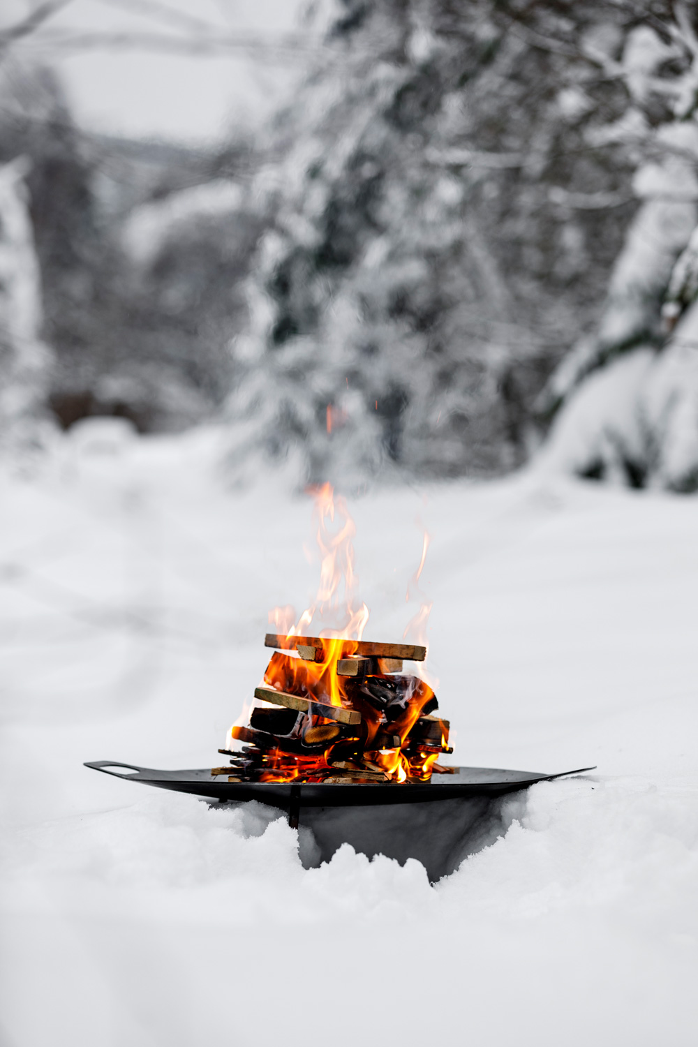 2 in 1: Die Petromax Grillpfanne und Feuerschale, das Multitalent aus Stahl. Entweder man entfacht ein Lagerfeuer in der Feuerschale, um den darunterliegenden Boden unversehrt zu lassen oder man stellt die Grillschale mit ihren drei Standbeinen (23 cm) über das offene Feuer, um leckeres Essen zuzubereiten. Der Clou: In der Mitte wird die Schale heißer als am äußeren Rand. Ein saftiges Stück Fleisch gart am Rand nach, während in der Mitte noch das Gemüse brutzelt. Bei jedem Brat- und Brennvorgang baut sich eine Patina auf, die für einen natürlichen Antihafteffekt sorgt. Auch ohne ihre Standbeine kann die Grillschale auf einem Atago verwendet werden. Mit den Standbeinen können auch mehrere Grillstellen übereinander gestapelt werden.