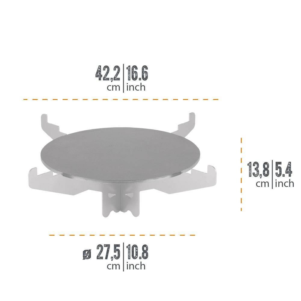- Abmessungen Grillplatte + Kochkreuz: ca. 13,8 x 42,2 x 42,2 cm