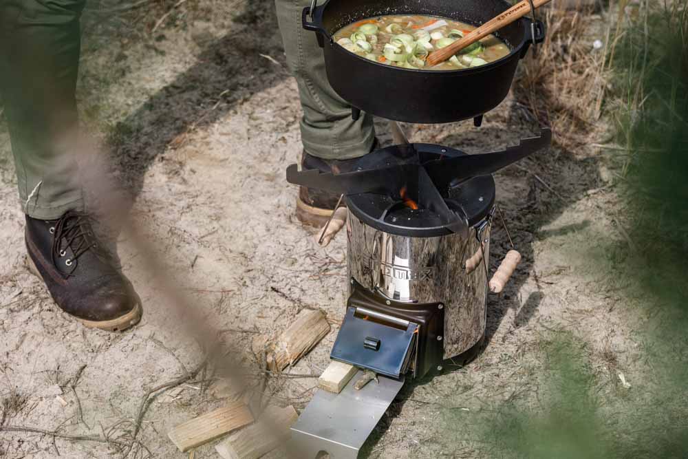 Zudem bietet das Kochkreuz auch den Petromax Feuertöpfen (mit und ohne Füße), Feuerpfannen, Perkolatoren und sogar der fs38 Feuerschale einen sicheren Stand, um auch diese effektiv auf dem Raketenofen nutzen zu können.