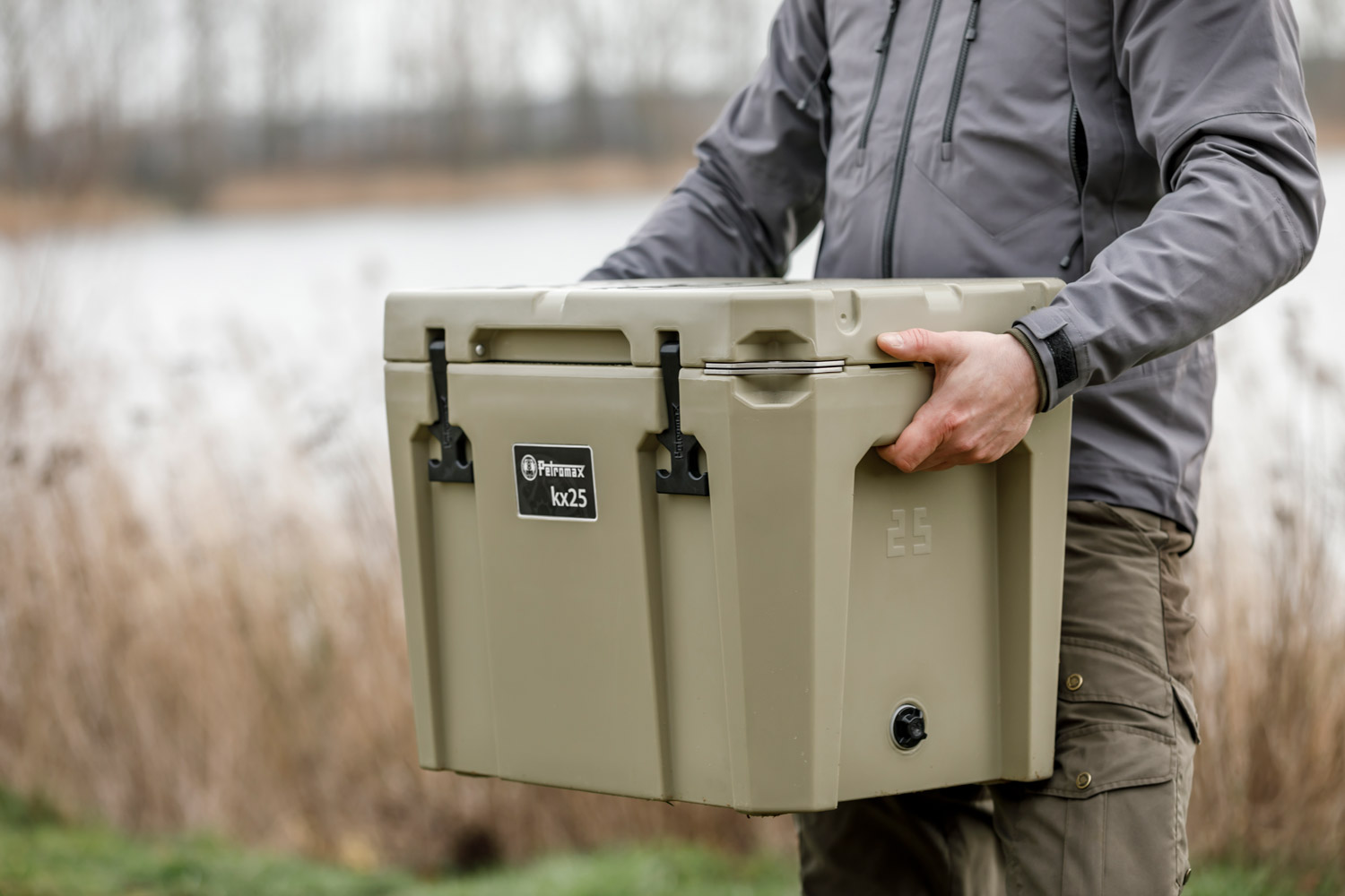 Der Innenraum der kx25 ist so konstruiert, dass bei 25 l Volumen bis zu 24 x 0,33 l Dosen oder 12 x 1 l Flaschen aufrecht verstaut und transportiert werden können. Auch fangfrischer Fisch oder mitgebrachter Proviant finden in Ihrer Petromax Kühlbox ihren idealen Aufbewahrungsort.