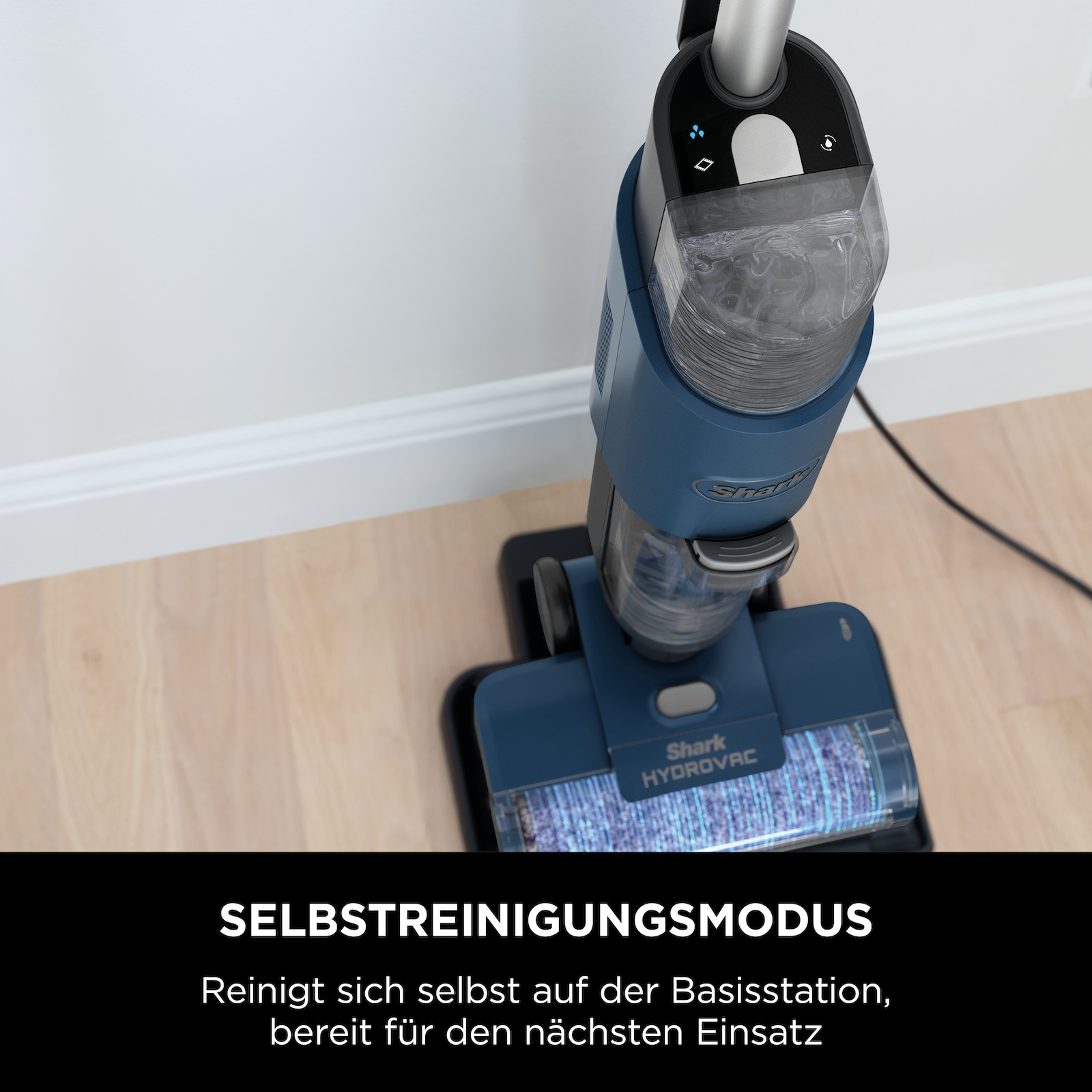 Böden und Teppiche können schnell nach der Reinigung wieder betreten werden. Wenn Sie mit der Reinigung fertig sind, stellen Sie Ihren HydroVac einfach auf die Basisstation und starten Sie den Selbstreinigungsmodus. Die Bürstenrolle, der Boden und die Innenröhre werden in nur wenigen Minuten gründlich gereinigt und getrocknet und sind bereit für den nächsten Einsatz.