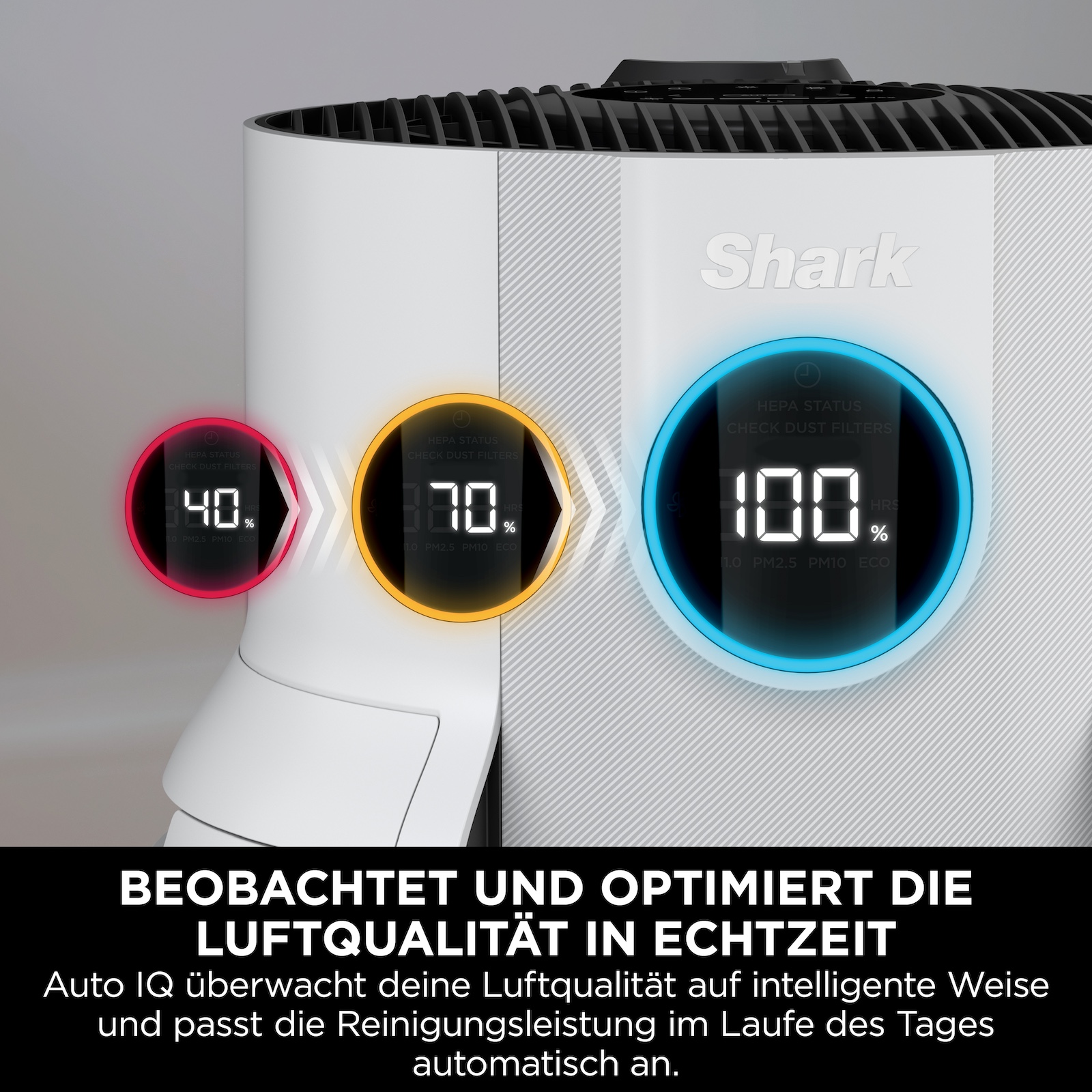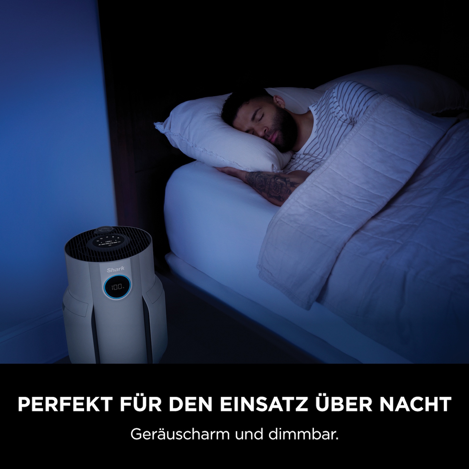 Kraftvolle Reinigung und Geruchsneutralisierung für große Räume mit einem HEPA-Luftreiniger, der die Luftqualität für zuverlässig gereinigte Raumluft überwacht und automatisch die Reinigungsleistung anpasst. Der leistungsstarke Luftreiniger eignet sich ideal über Nacht, da er geräuscharm und dimmbar ist.
