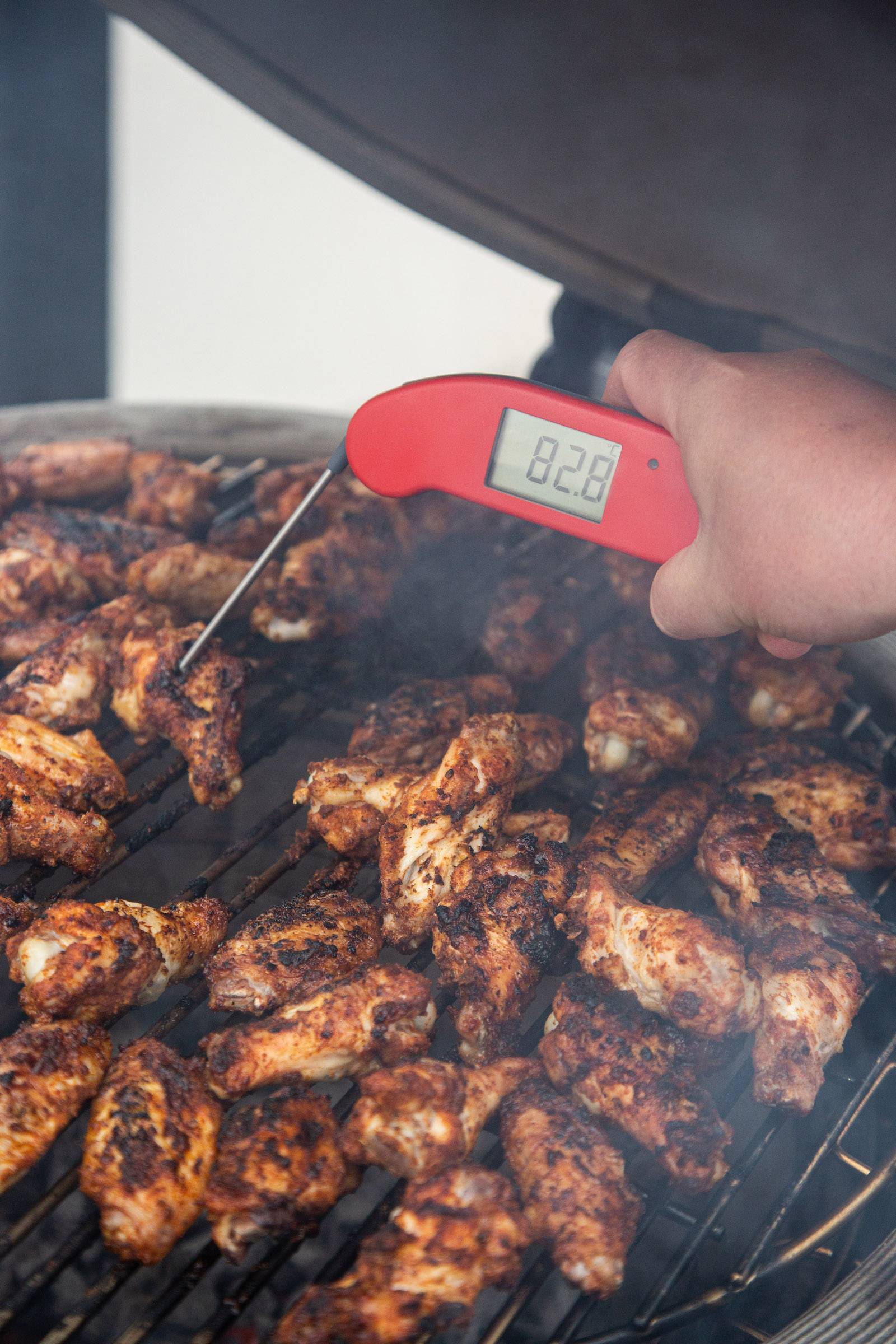Das Thermapen ONE Thermometer ist ein handliches und zuverlässiges Tool mit innovativen Funktionen, das Steaks, Hähnchen oder andere Lebensmittel auf den Punkt genau gart. Es misst in Sekundenschnelle die Kerntemperatur der Lebensmittel. Die Mikro-Element-Sonderspitze sorgt dabei für höchste Genauigkeit. Der Messbereich reicht von -49,9°C bis zu + 299,9°C. Die Anzeige im Display rotiert um 360°, so kann man die Temperatur in jeder Position leicht ablesen. Das intelligente Display mit Hintergrundbeleuchtung misst das Licht und schaltet sich bei unterschiedlichen Lichtverhältnissen automatisch ein und wieder aus.