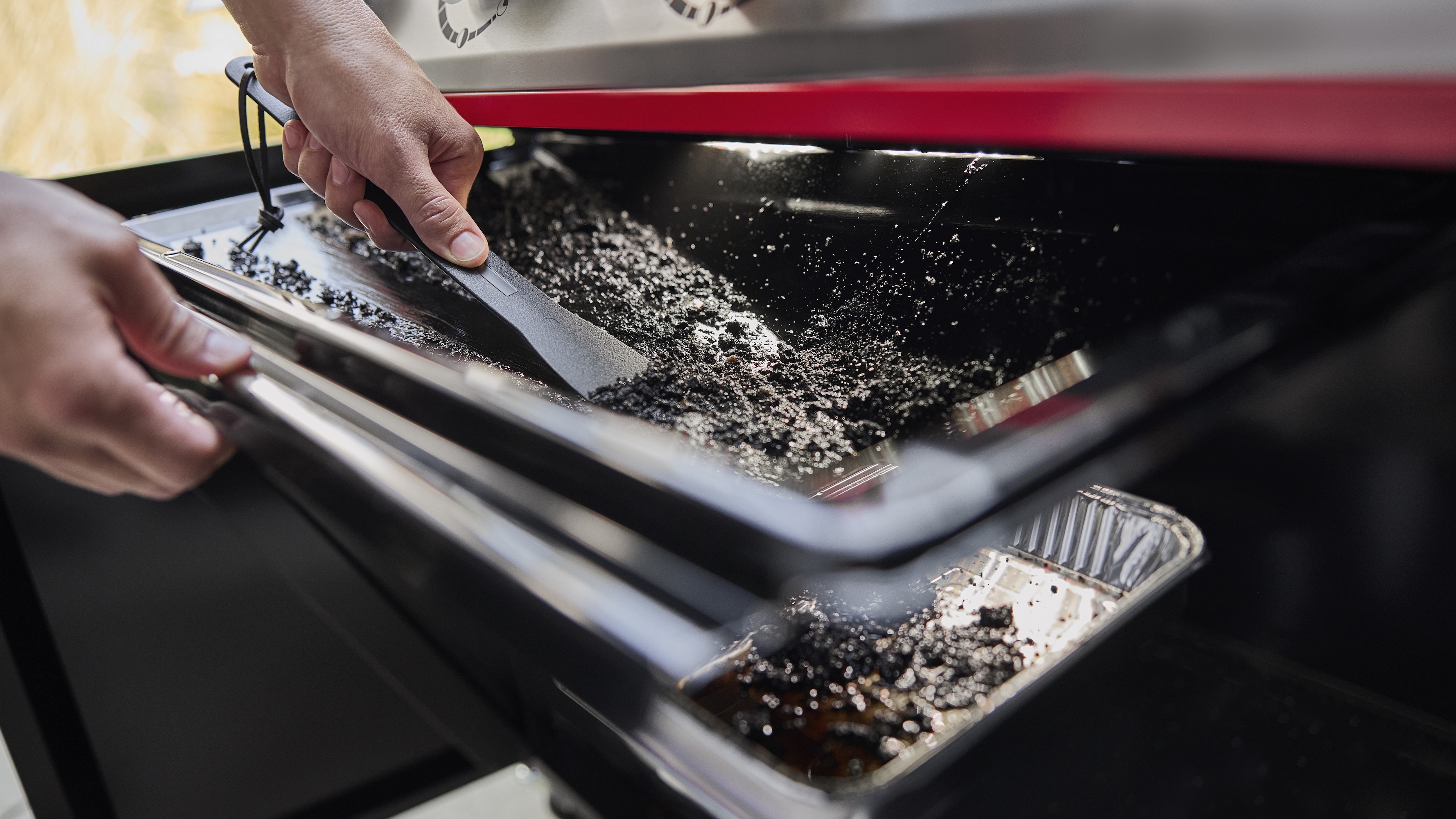 Ebenfalls komfortabel ist die Reinigung. Nach der Grillsession lässt sich der warme Rost einfach abbürsten und die Fettauffangwanne kann zum Säubern einfach nach vorn gezogen werden. Da die rechte Seitenablage klappbar ist, lässt sich der Genesis E-335W Gasgrill, trotz seiner großen Grillfläche, platzsparend verstauen.